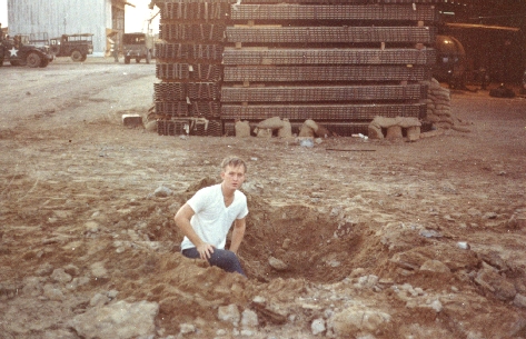 The end result was that only three were wounded by shrapnel as they dove into the bunker. That was the only night we quit working and got very drunk after that. All of the rounds landed about 3 feet short of their intended target. If they had been on target then myself and the other 10 that were in the bunker would have been killed instantly , the ammo connex would have blown up and the hanger would have colapsed.