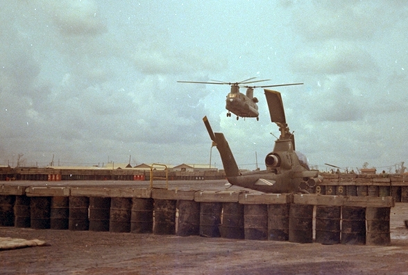More of my pictures from Nam including Chinooks , Cobra gun ships , Smoke ships , Mortar attack damage.