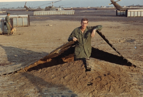 I was luckier than most guys in Nam because I could hit a cot to sleep on but then again I had to put up with a lot more mortar attacks that most. It was part of my job. From early on I worked all night long at both Bearcat and Dong Tam. It was easier this way to have all of our aircraft available for the next day's mission. The trouble was because of the mortar attacks we also often had to spend more time fixing the aircraft up from damage they sustained in a nightly attack than they had from the daily missions. The NVA /VC weapons of choice in the Mekong Delta were 82 MM(80 duece) mortars , recoilless rifles, 107 rockets and lastly the 120 MM mortar. It is the same as the US Army's 4.2 '' mortar. We dreaded those the most because you had little warning and it will go through a lot of overhead protection and blow the crap out of everything. The following pictures and 9th division report are from just one night.